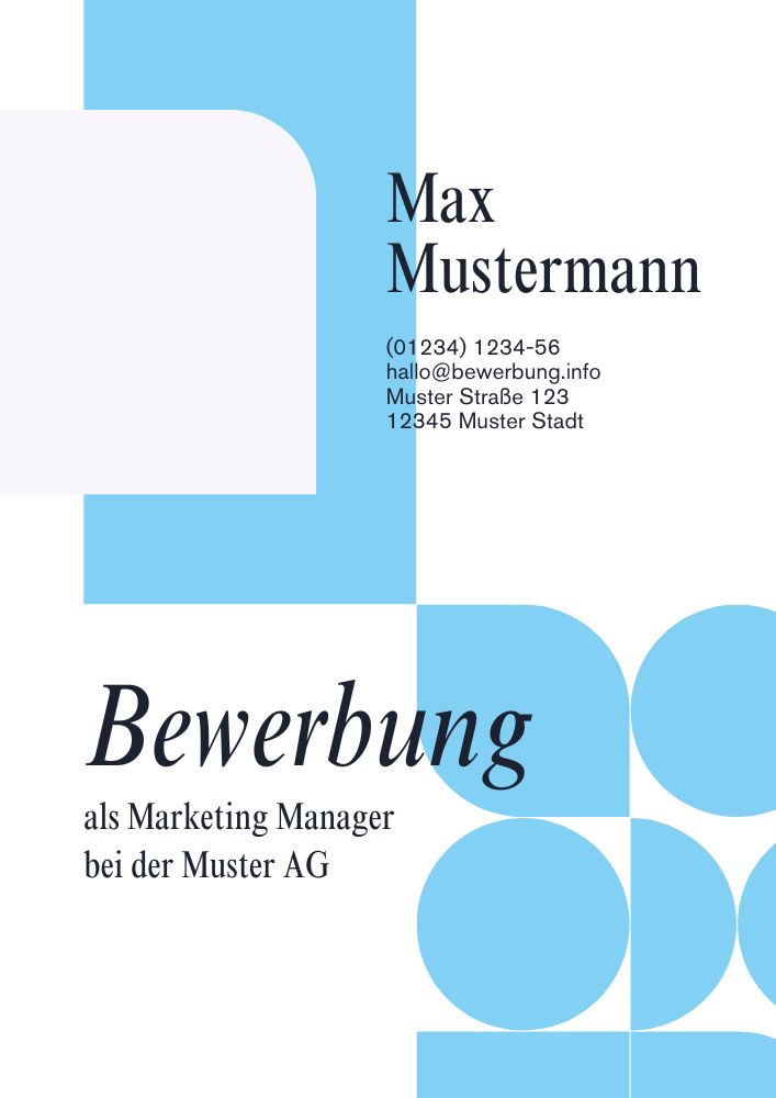 Gerne dürfen Sie die folgenden Deckblätter für Ihre eigene Bewerbung nutzen. Mit einem Klick auf das Bild können Sie das Deckblatt vergrößert betrachten. Klicken Sie auf den unter dem Bild platzierten Link und laden Sie das Bewerbungsdeckblatt im Word-Format zur weiteren Bearbeitung herunter.